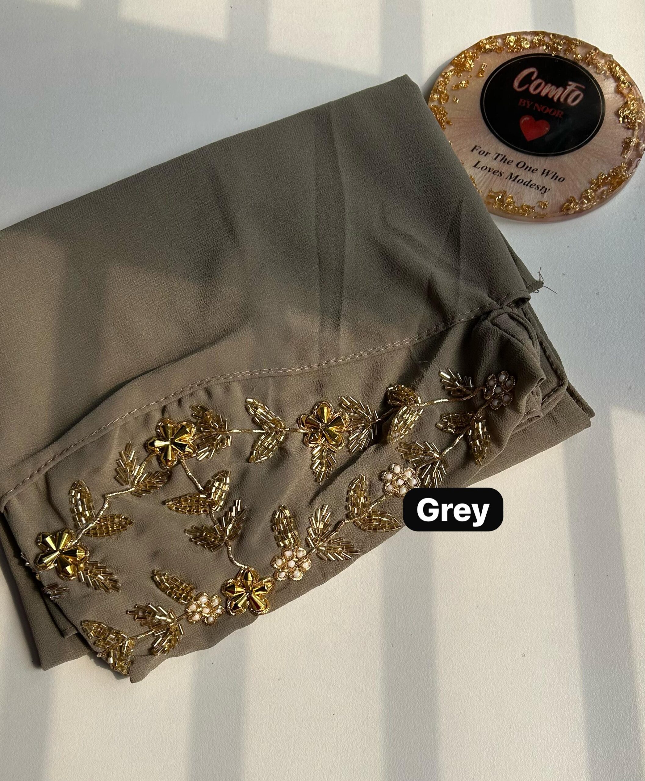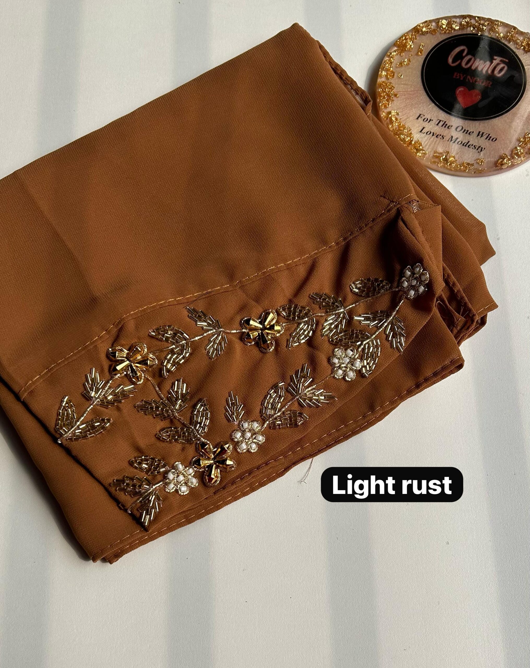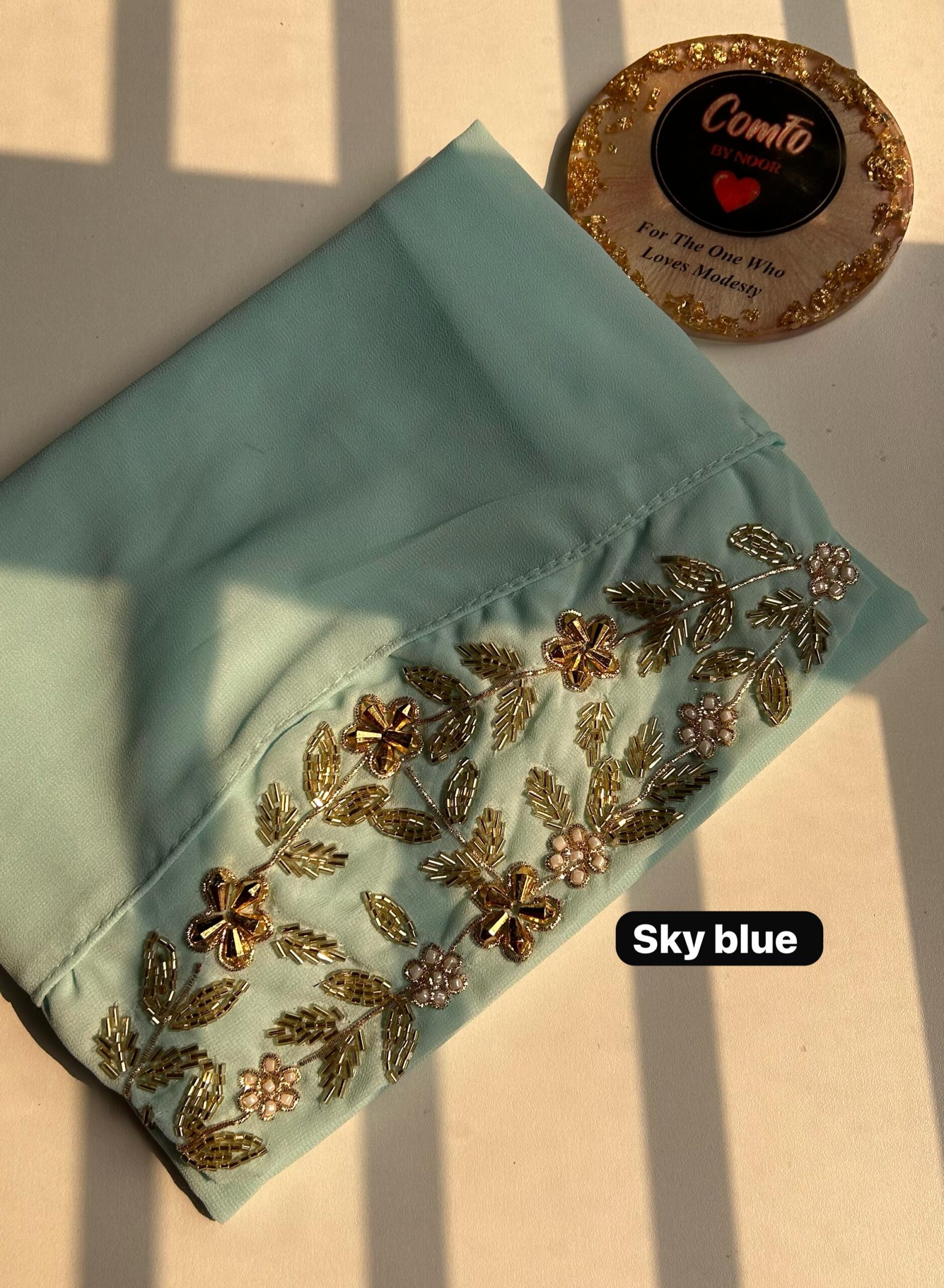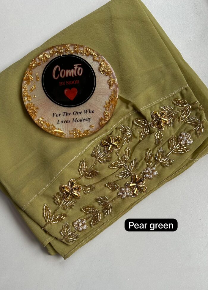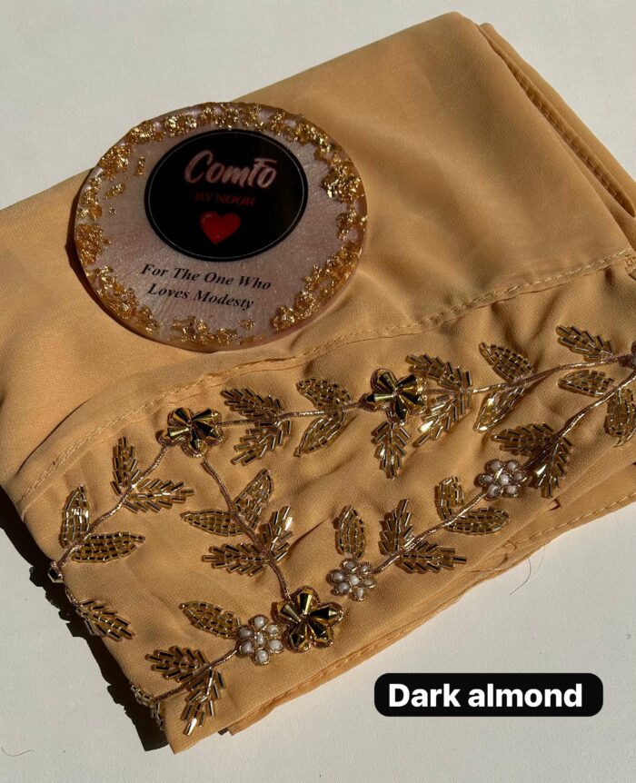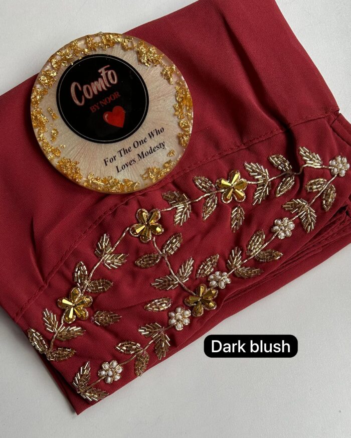 While all care has been taken to ensure that all details and images are accurate representations, sometimes colours vary due to monitor and camera nuances. Care suggestion – Due to the delicate nature of these hijabs, we recommend only Hand wash or dry-cleaning our luxury hijabs. Do not machine wash, do not tumble dry, soak or rub, or do not bleach.