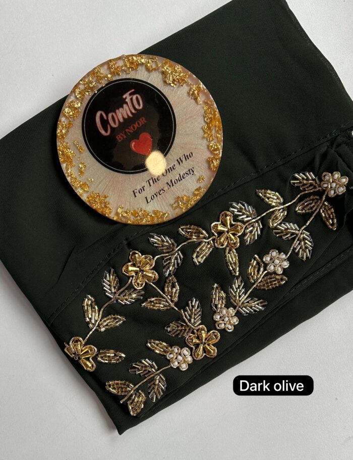 Introducing High-end Couture Hijabs crafted with the finest Zardozi Handwork Embroidery and opulently adorned with bespoke embellishments. Each hijab has been embroidered to perfection